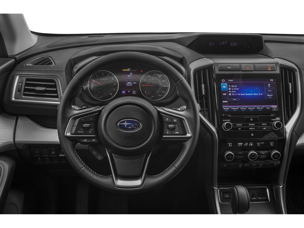 - Radio: Subaru STARLINK 8.0" Multimedia Plus System -inc: AM/FM stereo HD Radio w/single disc CD player, MP3/WMA/CRR/RW file capability, multi touch gesture high resolution LCD display screen, voice activated controls, Bluetooth® audio streaming connectivity, Bluetooth® hands-free phone connectivity, Bluetooth® hands-free, Android Auto, CarPlay, steering wheel controls for audio and Bluetooth®, 6 speakers, 3.5mm auxiliary input jack and front and rear dual USB ports