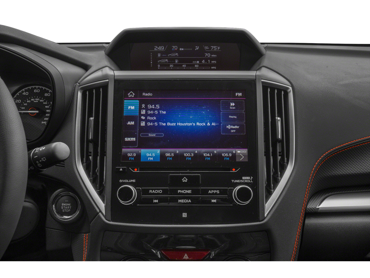 - Radio: Subaru Starlink 6.5" Multimedia Plus System -inc: AM/FM stereo HD Radio w/single-disc CD player w/MP3/WMA/CRR/RW file capability multi-touch gesture high resolution display 6.5" LCD screen Bluetooth® audio streaming connectivity and hands-free phone connectivity iPod control capability rear-vision camera display SiriusXM All Access radio and Travel Link (subscription required) smartphone integration: AHA Android Auto CarPlay and Pandora Starlink cloud applications: refer to subaru.com for app availability dual USB port 3.5mm auxiliary input jack 6 speakers and body color roof mounted antenna