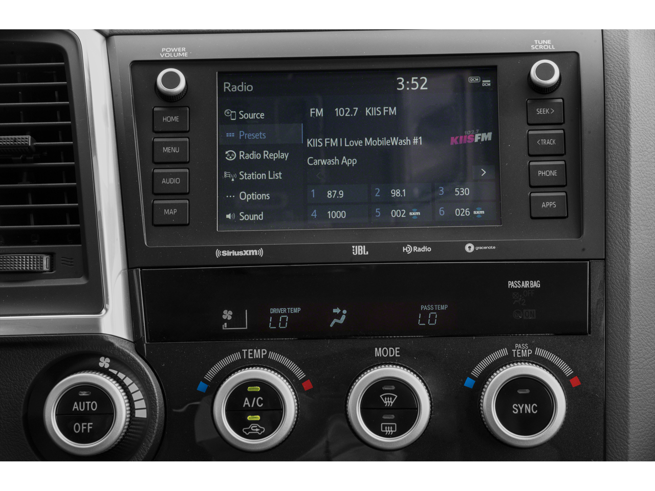 - Radio: Premium Audio w/Dynamic Navigation & JBL -inc: 14 speakers including subwoofer and amplifier 7.0" touch-screen AM/FM/HD Radio USB media port 2 USB charge ports Dynamic Navigation w/up to dynamic POI search dynamic voice recognition hands-free phone capability and music streaming via Bluetooth® wireless technology Android Auto Apple CarPlay compatible SiriusXM Toyota Connected Services - Safety Connect Service Connect Remote Connect Wi-Fi Connect w/up to 2 GB within Destination Assist See toyota.com/audio-multimedia for details