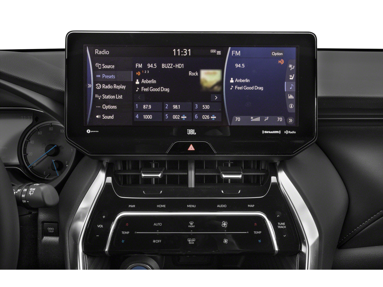 - Radio: Premium Audio w/Dynamic Navigation & JBL -inc: 12.3" touchscreen w/Intelligent Touch capacitive controls AM/FM/HD Radio 9 speakers w/subwoofer and amplifier 1 USB and 1 AUX media port 3 additional USB charge ports Dynamic POI Search Dynamic Voice Recognition hands-free phone capability and music streaming via Bluetooth® wireless technology Android Auto Apple CarPlay and Amazon Alexa compatible SiriusXM Connected Services - Safety Connect Service Connect Remote Connect Wi-Fi Connect w/up to 2 GB within See toyota.com/audio-multimedia and toyota.com/connected-services for details