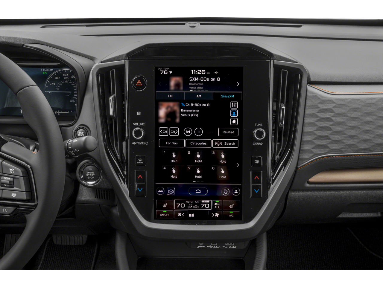 - Radio: Subaru 11.6" Multimedia Navigation System -inc: valet mode, integrated center information display, AM/FM stereo HD Radio, multi-touch gesture high resolution display screen, voice activated controls, voice activated navigation, Bluetooth® audio streaming and hands-free phone connectivity w/SMS text messaging connectivity (refer to subaru.com for cell phone compatibility), TomTom navigation software w/What3Words, iPod control capability, SiriusXM w/360L required after), SiriusXM Travel Link (subscription required) required after), SiriusXM Live Traffic (subscription required) required after), smartphone integration for Android Auto and Apple CarPlay w/full screen view and wireless connection, USB and Over The Air (OTA) audio system update, TomTom navigation system update w/USB/Map Over The Air (MOTA) s), steering wheel control switches for audio and Bluetooth®, harman/kardon speaker system w/11 speakers and 576 watt equivalent maximum output amplifier, 3.5mm auxiliary input jack and roof mounted audio and satellite antenna
