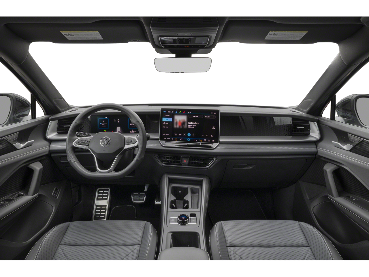 - Radio: MIB4 Composition Media Touchscreen AM/FM -inc: WMA/MP3/FLAC player w/USB, 12.9" touchscreen multi-function center display w/backlit sliders, voice control, 6 speakers + center speaker (7 speakers total) sound system, capability for in-vehicle 4G LTE enabled Wi-Fi (cellular data plan required; includes limited trial), capability for VW Car-Net services (capabilities for services vary; requires enrollment or subscription), Bluetooth® connectivity (for compatible devices), SiriusXM w/360L ; 360L services require acceptance of Car-Net terms), App-Connect smartphone integration (w/Apple CarPlay, Android Auto and MirrorLink) via USB, wireless App-Connect smartphone integration (for compatible devices) w/multi-phone pairing capability, 45W fast charging (for compatible mobile phones and accessories) via USB in both rows and Qi wireless inductive charger, cooled, up to 15W (for compatible mobile phones and accessories)